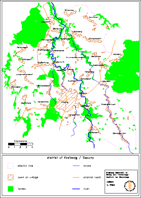 figure 1: Topographic map of area under investigation (district of Freiberg/Saxony)